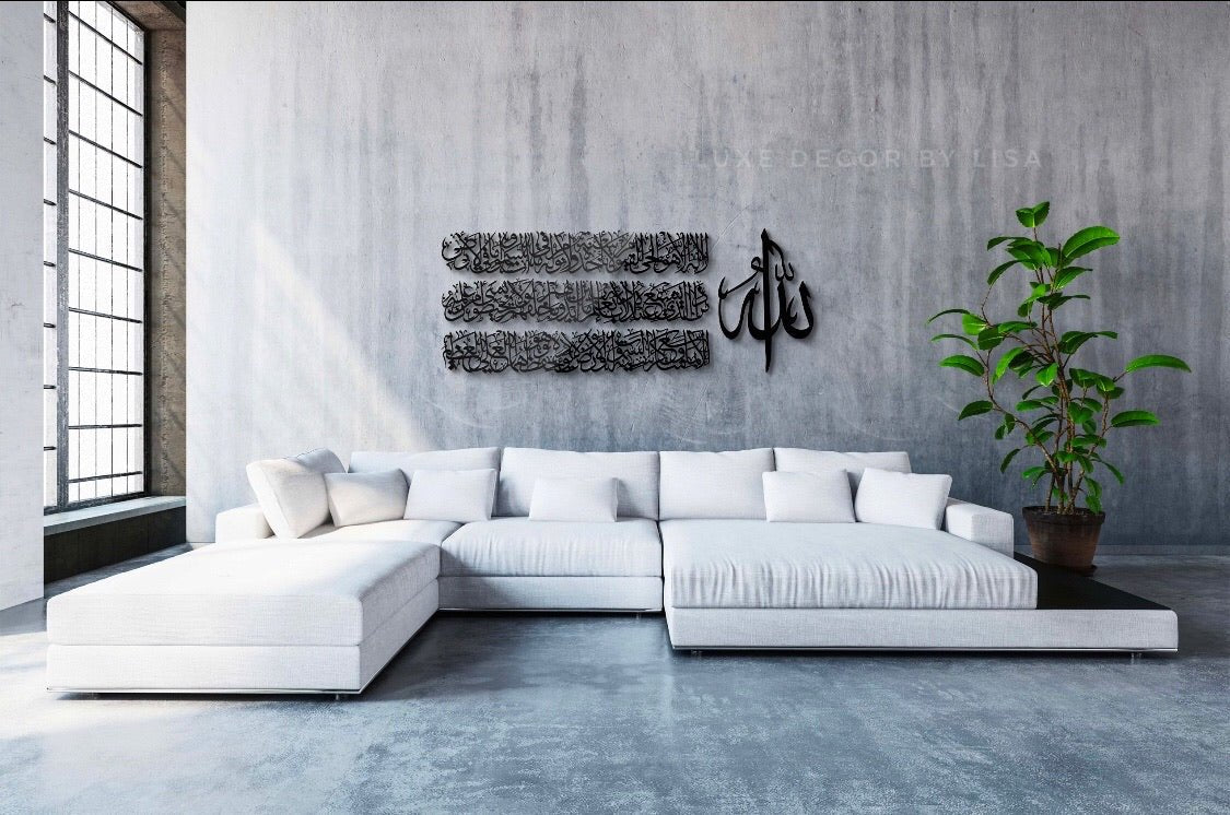The 3 lines of Ayat Al Kursi individually are 19cm tall x 115cm wide each