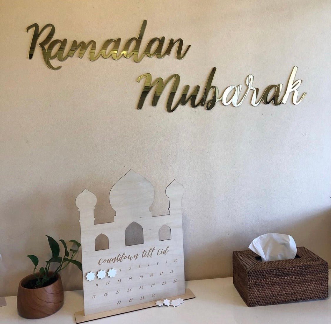 3 Worded Set for Eid, Ramadan + Mubarak Wall Hanging Words